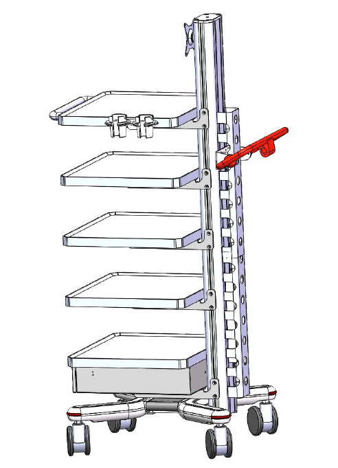 Endoscope trolley with 5 layer equipment plate and liftable monitor support
